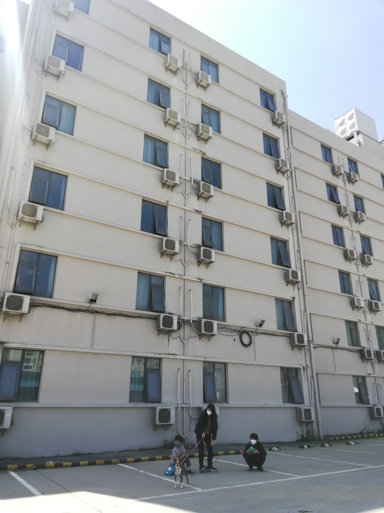 We were all given rooms on the same floor. Everyone had to quarantine by themselves in their own room unless there was a medical condition (requires paperwork for proof) or if you were a minor. My 15 year old daughter was considered an adult, and so we each were allowed to have one minor in the room with us. So, my 15 year old and 13 year old roomed together. And my 7 year old and I were in a room adjacent. The walls are concrete, as is the norm in China, so we really couldn’t talk to each other through the walls. But there were phones where we could talk to reception or call other hotel guests.