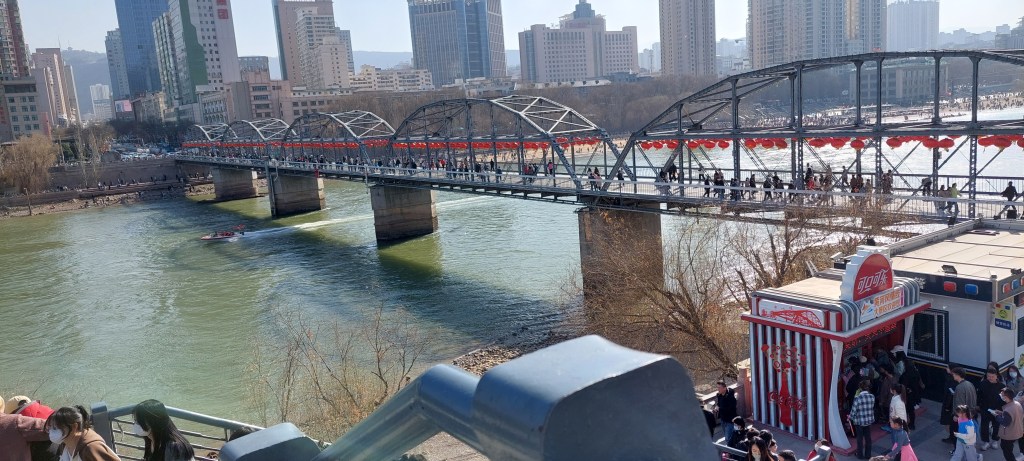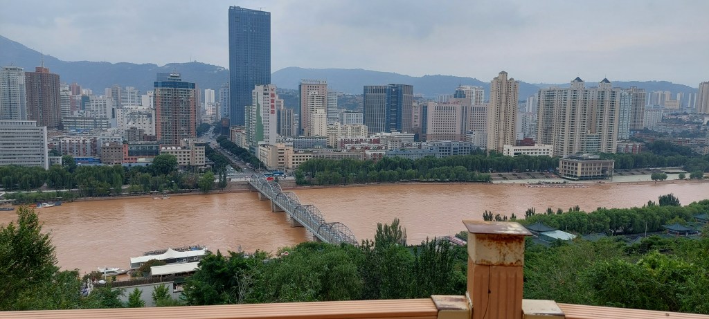 Just past the famous Zhong Shan Pedestrian Bridge along the Yellow River, this is a favorite place for the locals to visit. The trees provide ample shade and you can enjoy beautiful views of the river and the city. Today, the river is green, not yellow because the water is calm and there are not strong enough currents to shake up the sediment underneath.