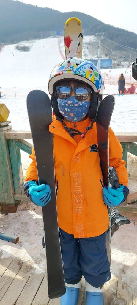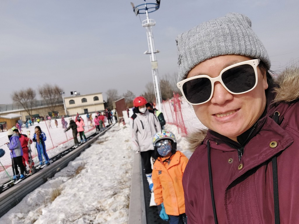 After some time skiing, our middle child started complaining about his foot hurting. He got a blister because the boot was rubbing against the side of his foot. Even after changing to more comfortable ski boots, he said the blister was still bothering him. I approached a staff person about it and we were immediately escorted to the first aid room. It was a nice room with a bed, desk and sofa. We sat down on the sofa and soon after, a nurse came in to talk to us. She treated his blister with some kind of disinfectant spray that also helped with the pain and put it a band aid on it. She took a photo and shared the photo with me on WeChat, along with instructions for what to do if we needed to go to a hospital for treatment after it. Insurance was included so any treatment for any injury would be free. She gave him a cup of hot water and we were allowed to stay there for as long as we needed to. We felt so well cared for! It was nice to be able to just sit there and relax for a bit. Soon after, my son was feeling better and he enjoyed skiing for the rest of the day.