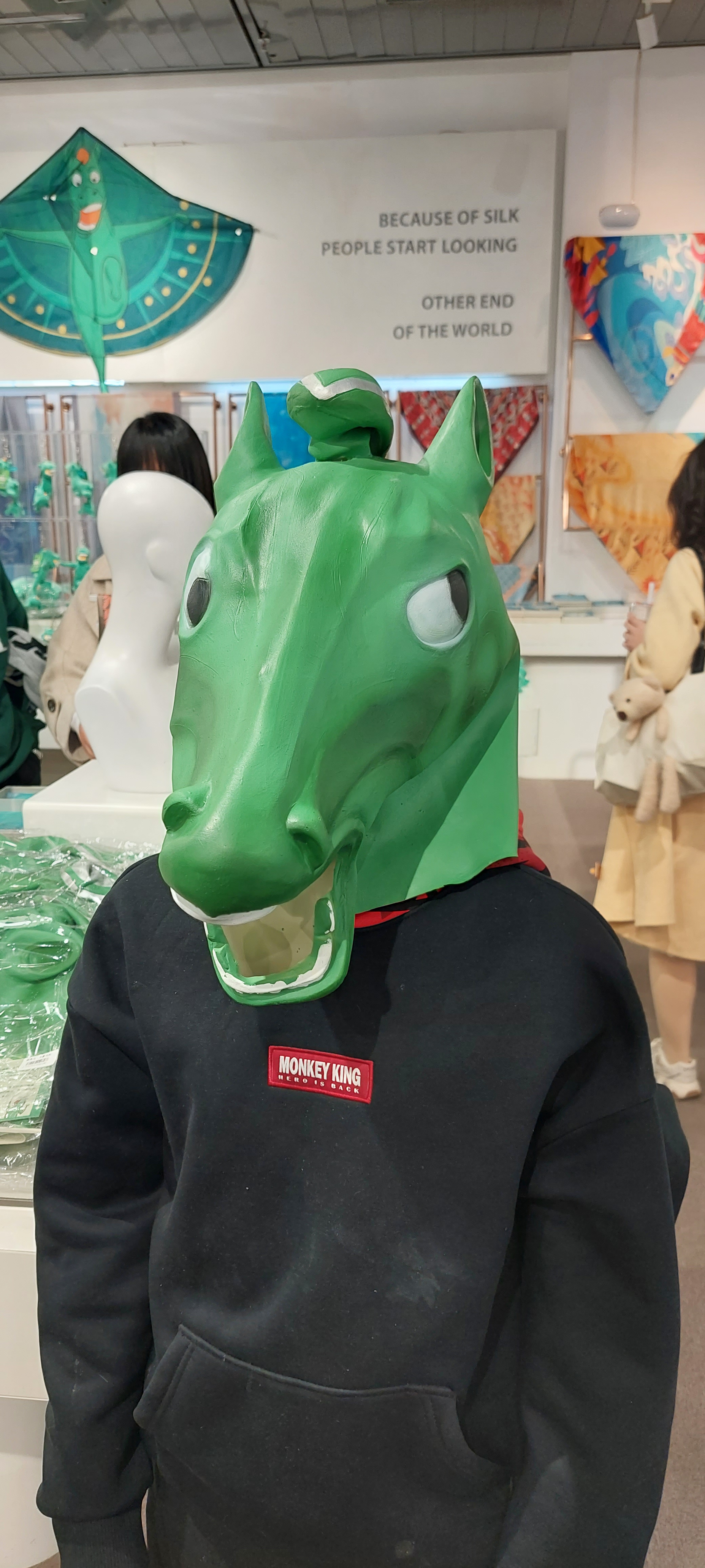 Like any other museum, you usually end up at the gift shop, where you can buy souvenirs and special things to remember your time there. As we walked towards the gift shop, there was this huge plush creature, inviting you to take a pose with it. It looked like a dinosaur to me. At the gift shop, similar looking bright green toys were being sold. “What were they?” I wondered. They looked like a sad attempt at creating something that was supposed to be cute. What was most strange of all, was the Angry Bird looking bird at the bottom of one of its feet. If not for that, I was thinking it was either the Loch Ness monster or Puff the Magic Dragon. There were two versions of the toy, one with arms outstretched, and one that was shaped more realistically like a four legged animal. Still, I didn’t get it at all. Why was this odd looking plush toy being sold here? I left the museum, perplexed and wondering if I had missed something.